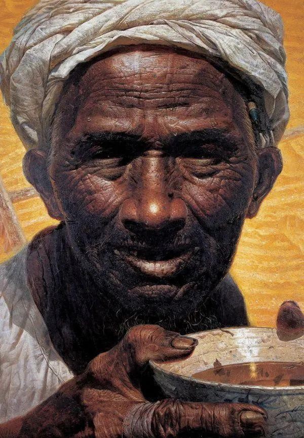 在色彩的运用上,陈丹青还注重对比与和谐的统一。例如,在以暗色调为主的画面中,会点缀一些明亮的色彩,如藏族青年身上佩戴的鲜艳饰品、红色的头巾等,这些明亮的色彩在暗色调的背景下显得格外突出,增强了画面的视觉冲击力。同时,这些色彩的点缀又与整体的色彩基调相融合,不会显得过于突兀,使画面达到了一种色彩上的平衡与和谐。