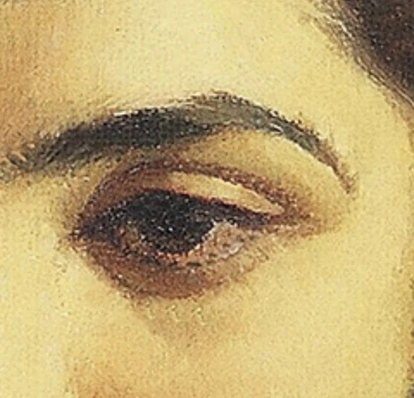 杨飞云也执着于用西方古典绘画的方式表现一种东方式的美感,追溯一种中国文化中含蓄、精微、细腻的本源。芃芃身上所展露的东方美感,极大契合了杨飞云的审美观念。就像罗塞蒂笔下的西达尔一样,妻子青春的身体仿若缪斯,赋予杨飞云的画作一种生命的厚度。画中芃芃合拢的双手,尤其是两只用力夹紧的胳膊,告白了年轻女性面对世界的羞涩与忐忑,与蒙克《青春期》中惊恐的少女极其相似。不同的是,芃芃用一种平静的回视坦然接受画家和观众的近观。这一微妙的心理捕捉进一步塑造了人物悠远、静谧的气质。的确,杨飞云始终坚持将对象与其社会属性彻底剥离,通过古典主义精妙技巧,剖析隐藏在形式表层之下的人性真实。