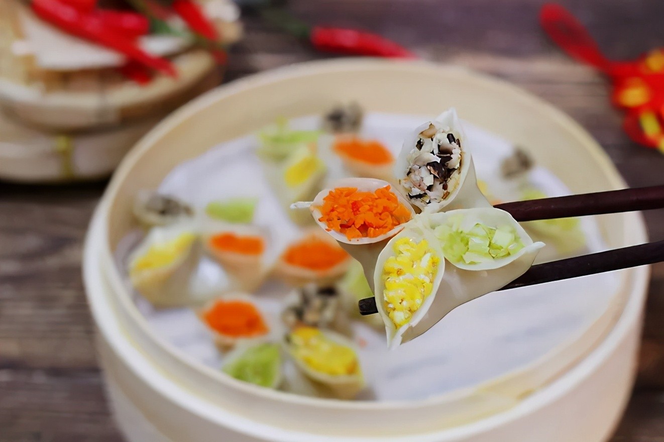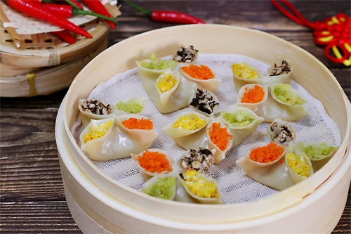 四喜蒸饺形态美观,玲珑可爱,色泽分明,鲜咸味美。每一部分都装着不同的食材,一口能吃下多重味道,口感超棒~