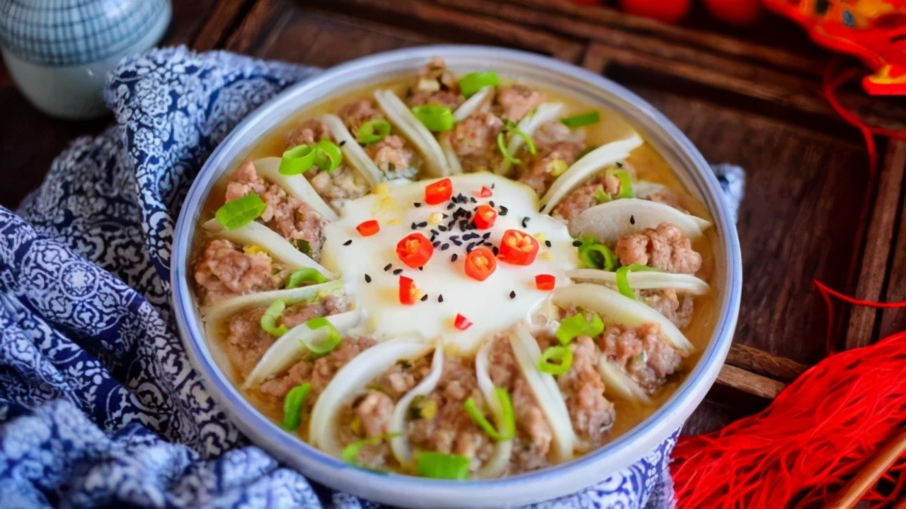 主料:白萝卜半个、猪肉馅150克、冬笋1个、鸡蛋1个