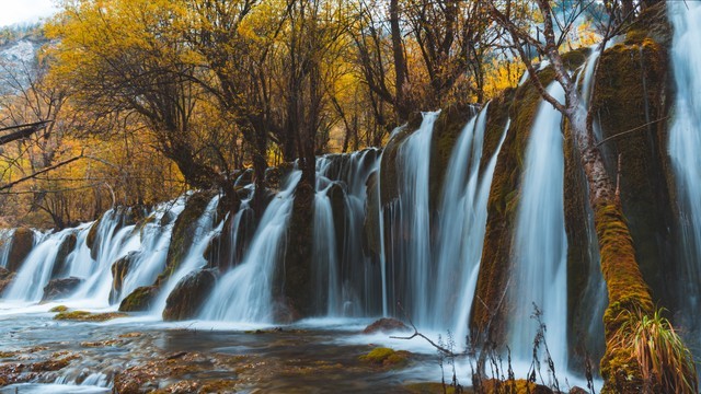 九寨沟瀑布位于四川省阿坝藏族羌族自治州九寨沟县,是九寨沟著名的景点之一。九寨沟瀑布由多个小瀑布组成,水流清澈,瀑布周围景色如画,让人仿佛置身于仙境之中。