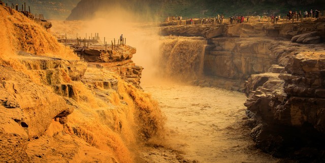 壶口瀑布位于山西省临汾市吉县和陕西省延安市宜川县交界处,是中国最大的黄河瀑布。壶口瀑布的形成是因为黄河流经此处时,河道突然收窄,河水奔腾而下,形成了壮观的瀑布。瀑布周围还有许多值得一游的景点,如黄河大峡谷、乾坤湾等。