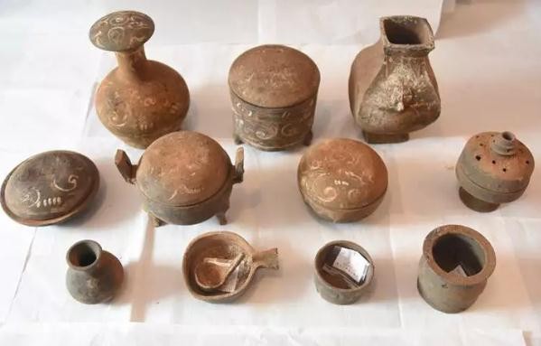 整个发掘区墓葬多随葬一陶罐,随葬品位于墓主脚部。少数墓葬随葬品较多,器物组合多以陶罐、陶壶、陶杯、陶盘等为主,随葬品位于墓主脚部或耳室内。