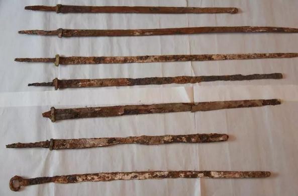 一区墓葬比较集中,且为南北长条状分布,墓葬方向基本为东西向。墓内随葬品组合多为铁剑、铜钱。二区墓葬分为东、西两区。西区墓葬以石室墓为主,东区墓葬多是土坑墓,且墓穴上有盖板而无挡板与侧板。二区随葬铁剑的墓葬,墓内的铁剑多为两把。