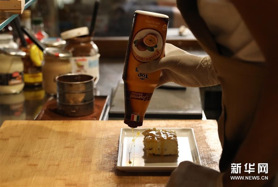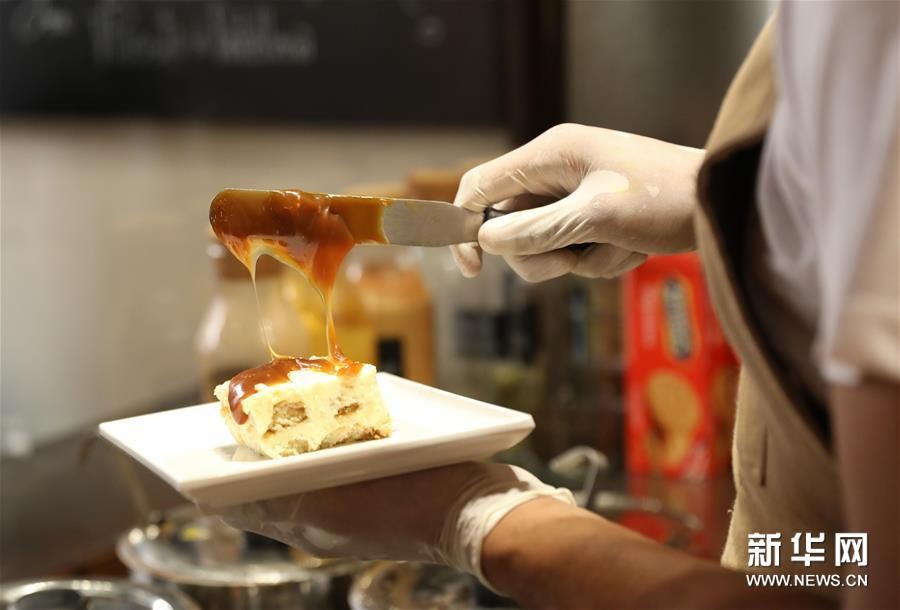 8月23日,在意大利首都罗马的一家餐厅,一名厨师在制作提拉米苏。新华社记者 程婷婷 摄