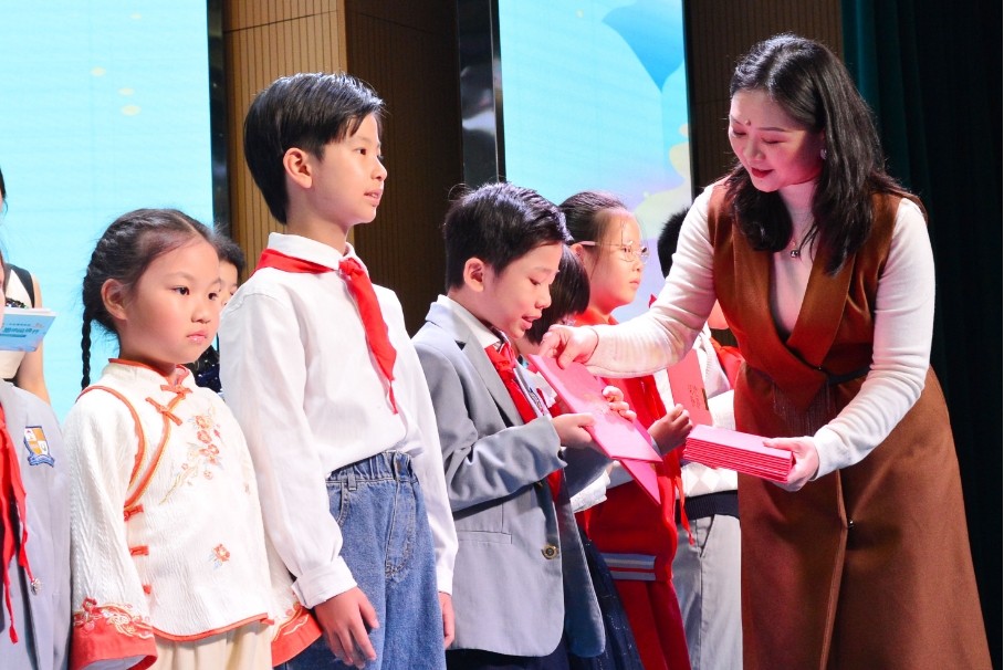 获奖的“小小荐书官”依次上台接受荣誉:11名参赛者荣获“一等奖”,22名参赛者获得“二等奖”,36名参赛者获得“三等奖”,51名参赛者获得“优秀奖”,21名参赛者分别获得“创意奖”“风采奖”和“文化传承奖”。此外,荐书官LOGO征集有3人获创意奖。
