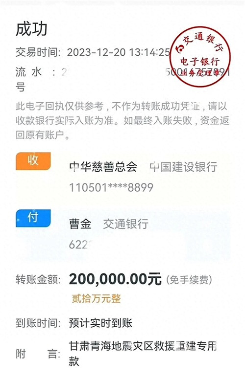 【引言】:哎呀妈呀,朋友们,你们有没有听说过咱们喜剧界的一个响当当的名字——曹云金?这位曹大侠可不是一般人哦,他不仅仅在相声界掂过一把手艺,在善举这块儿也是挺有来头的。怎么说呢?就是前段时间甘肃、青海那儿地震了,你们肯定也瞧了一些消息,咱们的名人大侠们个个都挺身而出,纷纷伸出援手,这其中就包括咱曹大侠。但是呢?这事儿没那么简单,它在网上掀起了一股腥风血雨,成了一场名副其实的“诈捐门”!咱们现在就来扒一扒这个事儿的庐山真面目!先说曹云金,他那是个技艺不凡的相声演员,可在慈善界也算是个小有名气的人物。他在灾难发生后,像很多大家一样,迅速行动起来,表示要捐款帮助灾区。可这次捐助的过程,就像是一出大戏,场场精彩,让人看得目不暇接。咱们网上开始流传两张图片,一张是汇款回执,数字很醒目,20万大洋,汇款人签的是“曹金”,你们猜怎么着?