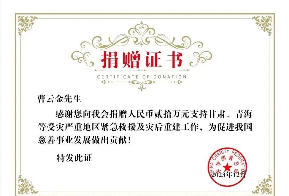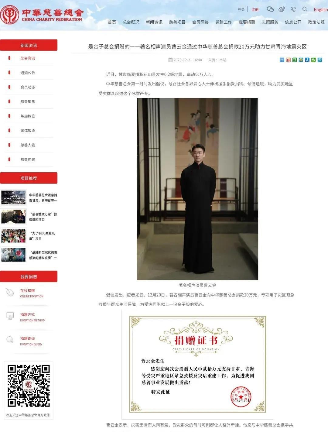 这样一来,大家的怀疑心就更重了,毕竟真金不怕火炼嘛,真的捐了,为啥不敢大大方方晒出证书呢?好在,世界上总有真相的一面。终于,有位心细如发的网友在中华慈善总会的官网上发现了一篇文章,这篇文章中,那份备受质疑的捐款证书大大方方地亮出了真身。至此,曹云金20万元捐款的真相也水落石出了。但你们说,这个热点为啥这么引人注目呢?咱们得探个究竟。【事件经过】:从最初的捐款证书争议到后来的社会各界人士的调查,这个“诈捐门”可谓是走了一趟过山车。起初,那张无水印无落款的证书就像是一块红布,挑起了网友们的斗志,大家开始积极展开自己的侦探技能,一件件事情开始浮出水面。大家记得吧,网友们挖掘出来的那些瓜,比如在慈善总会官网上找到几个名叫“曹云金”的捐助记录,但那些数字和20万相差甚远,甚至有的只有一块钱。这就更加剧了大众对这位喜剧大腕的质疑,仿佛每个人都变成了法官,随时准备给出自己的判决。