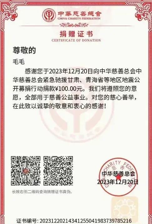 这是曹云金的大名!另一张呢,是捐款证书,但这张证书一出来,问题就大了。就像是八卦大战中的一颗炸弹,瞬间引爆了网友们的热议神经。所以说啊,八卦的世界里,总有些事情是出乎意料的。就这张证书,怎么就那么多奇怪的地方呢?比如上面写的捐款人是“曹云金”,但汇款单上不是“曹金”么?这就很让人摸不着头脑了。还有啊,格式上也和其他的证书不太一样,少了水印,没落款日期,连个证书编码都没有。这种情况在咱们网上流行的证书里是很罕见的,所以你们说,能不引起争议吗?越是这样,网上的讨论就越是热烈,到处都是“曹云金诈捐”和“曹云金伪造捐赠证书”的声音,就像山雨欲来风满楼,气氛紧张到不行。于是乎,我们这些爱八卦的人也跟着进入了这场风波,开始追踪调查这个事件。我自个儿也是反复查阅了曹大侠的个人账号,想找线索,但他发布的视频里头,那张捐款证书像人间蒸发了一样,只剩下一张汇款回执。