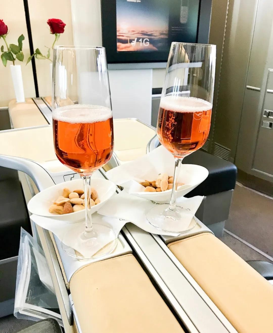 除此之外,高等舱位供应的食物酒水也会更高端,这个可能大家都知道,但不同航空公司提供的餐饮水平也不太一样,阿航和新航堪称佼佼者~