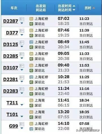 1 上海到深圳一共才10趟车次