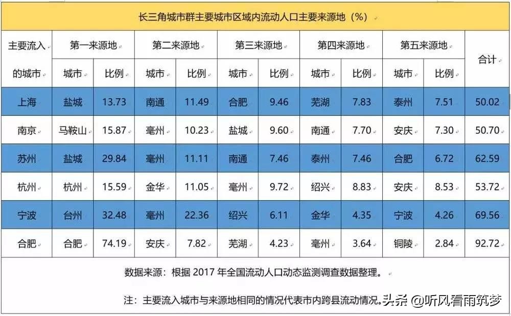 根据国家卫健委日前发布的《中国流动人口发展报告2018》可以看到,长三角城市群的外地人,主要来自以下这些地区,几乎找不到一个华南地区的城市。