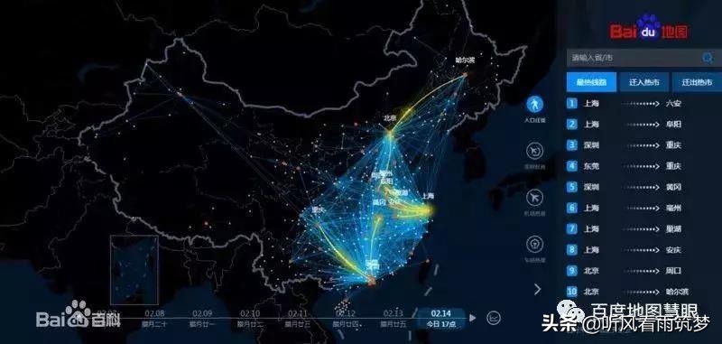 先来看两张百度地图制作的春运动态迁徙图: