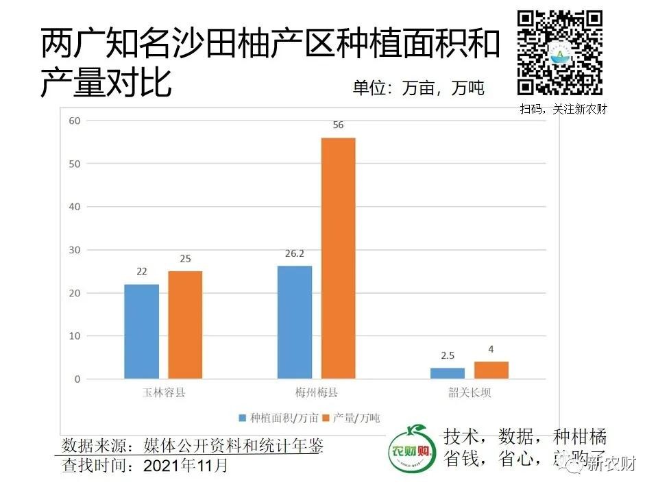从2021年已公开的数据看,梅县金柚的种植面积、总产量以及单产水平已经远远超过了容县沙田柚,成为中国沙田柚最大的产区。