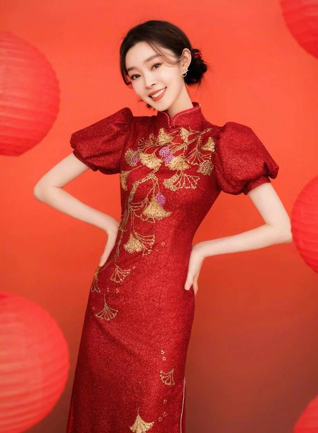 不只是在影视作品里,宋轶在时尚领域同样表现亮眼。春晚彩排时,她身着红色旗袍登场,红色绸缎闪耀,金色图案精致,剪裁完美勾勒身材曲线,优雅又性感。搭配精致发型和妆容,笑容甜美自然,亲和力十足。