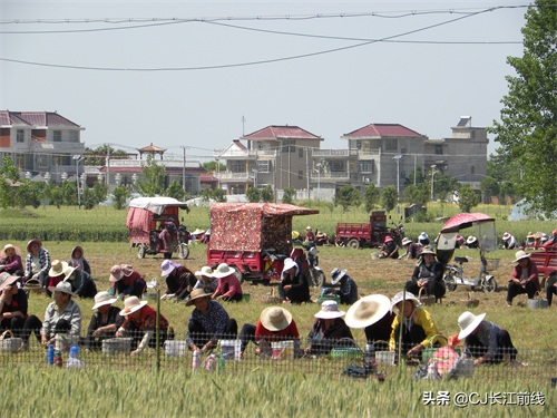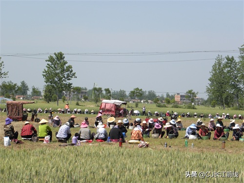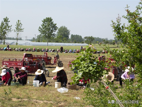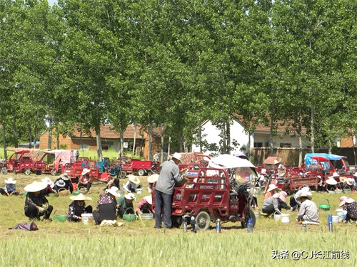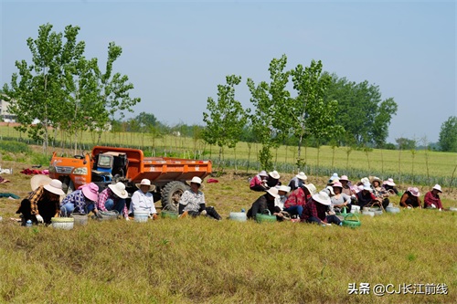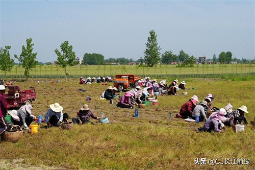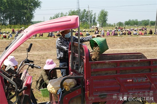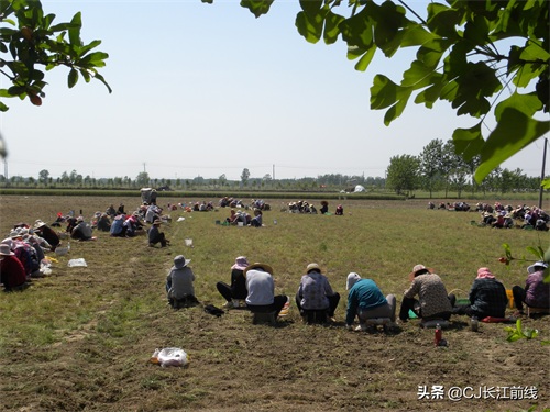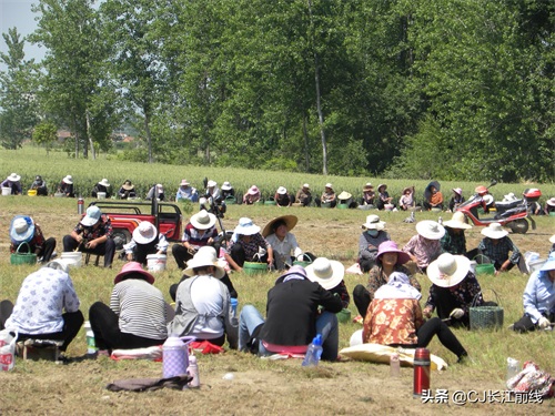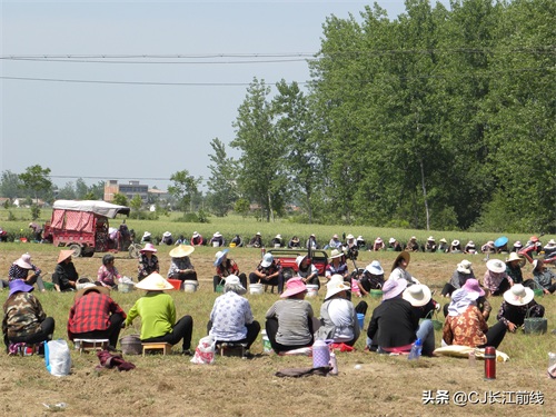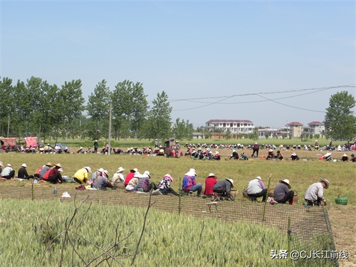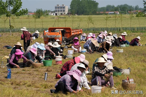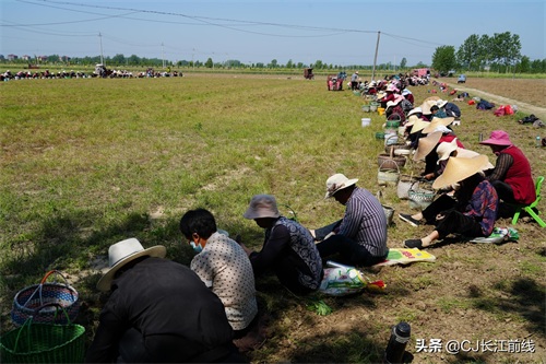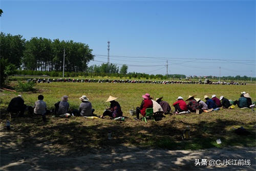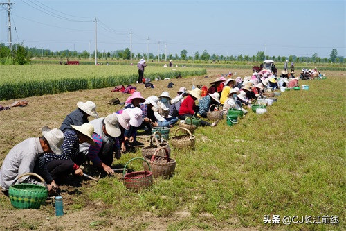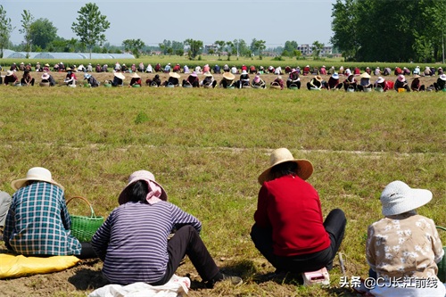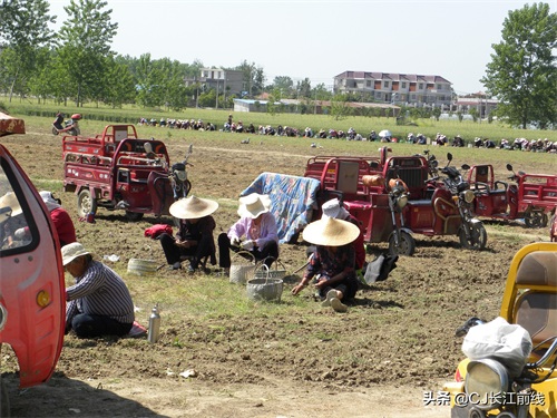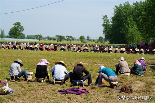 图为当天该村来自息县、驻马店市新蔡县及本县村民前来帮助种植专业户采收猫爪草的壮观场景。