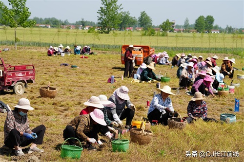 2022年5月6日,河南省淮滨县防胡镇甘庄村到处是中药材猫爪草收获的场景,仅该村河洼组就组织了600多名劳动力进行采收。