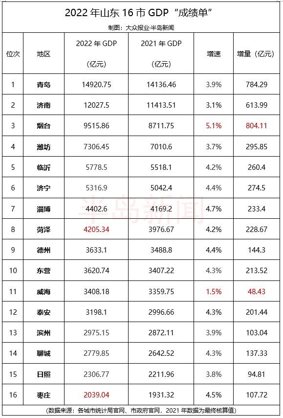 2022年山东各地市GDP数据