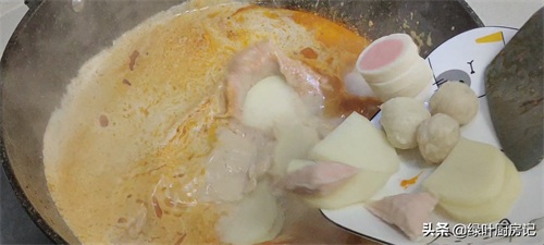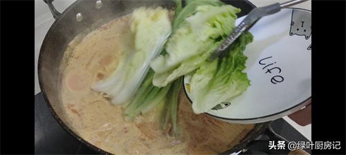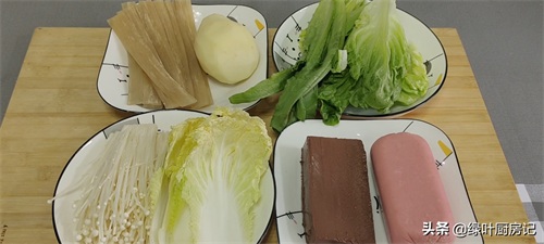 5,锅中烧开以后,先把不容易煮熟的食物下入锅中,最后再把青菜下入锅中,这样会避免青菜煮太长时间而烂掉,,下入青菜后再煮一分钟就可以出锅了。