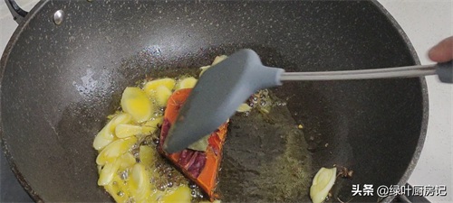 3,锅中倒入适量食用油,油温五成热倒入葱姜蒜,麻椒爆香,然后加入一小块火锅底料,翻炒出香味后,加入一勺清水,在煮十分钟,这样能使锅中大料煮出香味
