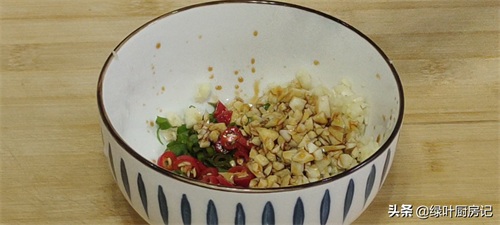 2,把葱姜蒜切好放入盘中放入碗中备用,再加一小把麻椒。