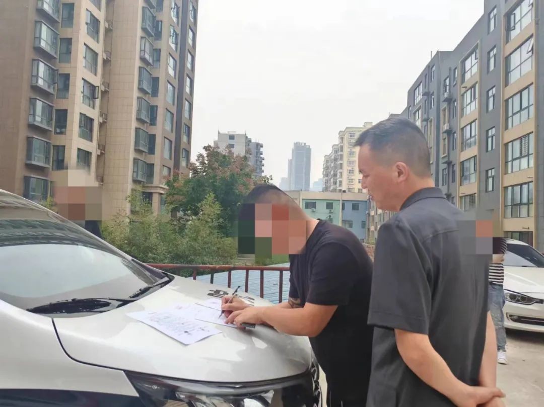 因距离较远,执行团队在路途中委托杞县法院先行前往扣押。“你们凭什么扣押我的车!我就是不给钱……”在执行团队到达现场时,被执行人庆某仍在狡辩,就是不愿交出车钥匙。