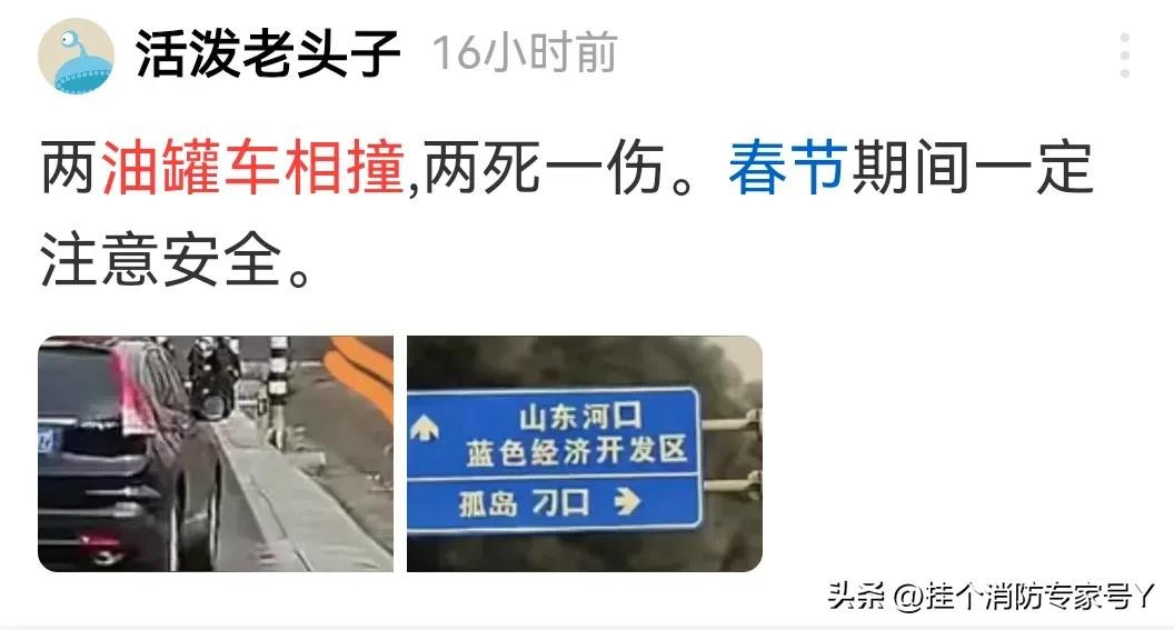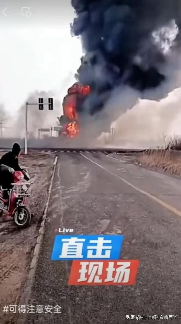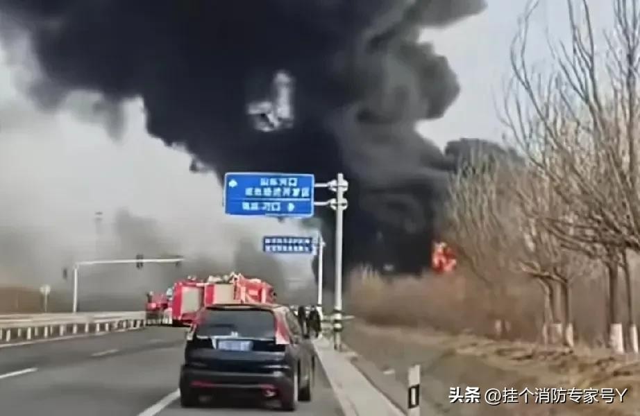 #火灾有多可怕#网络信息,2025年1月25日下午,东营市河口,公路上行驶的油罐车突然发生交通事故,撞击起火,不仅经济损失惨重,环境污染也十分严重。