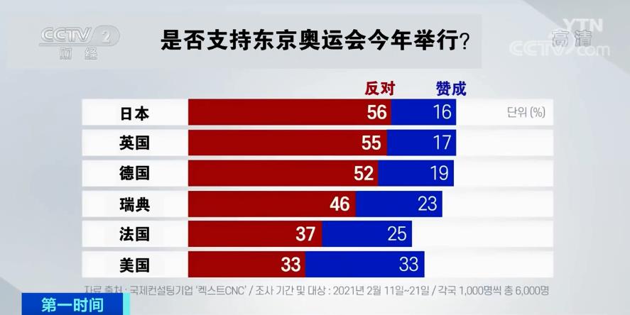 另据韩国YTN电视台报道,一项针对6个国家民众的民调结果显示,反对举办奥运会的民众占相对多数。其中,在日本、英国和德国,反对的民众超过半数,在法国和瑞典,反对的民众多于支持者。只有在美国,反对和支持的人数相同。