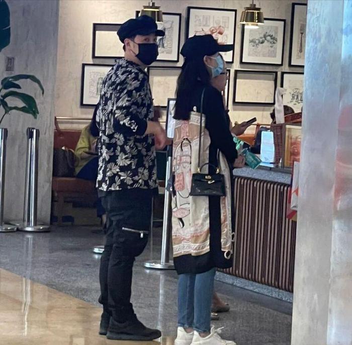 当天潘玮柏身穿黑色印花西服,戴着口罩帽子,一旁的宣云则穿着长款外套,看上去气质非常不错↓