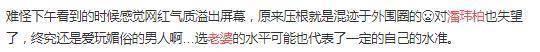 宣云的历史被扒出来后,不少网友都嘲讽潘玮柏也是爱玩喜欢外围圈的男人,选老婆的水准就代表了自己的水准,并对他表示超级失望↓