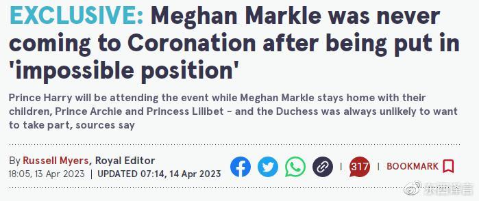 据英媒在当地时间4月13日发表的一篇报道,梅根·马克尔被王室置于“不可能的境地”,她再也没有可能来参加王室典礼,无缘出席查尔斯国王的加冕典礼。