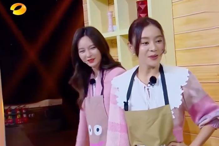 现场嘉宾也一直起哄,沈梦辰说,两个人可以系围裙、增加互动,搞得袁姗姗在旁边没说话,只能尴尬的笑一笑。