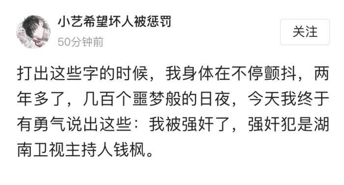 点击进入专题:湖南卫视主持人钱枫被控强奸
