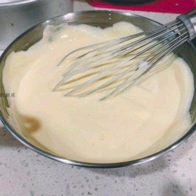 1.蛋清蛋黄分离,蛋黄中加入牛奶和玉米油,搅拌均匀,无水油分离,然后加入过塞的滴粉,搅拌顺滑无颗粒。