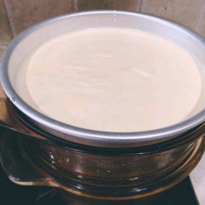 4.然后倒入模具中,将蛋黄糊表面颠平,垂直正极下模具处于大气泡中。把8英寸的模具盖上盖子,如果你的锅更大,一定要用耐高温塑料薄膜包裹,或者用盘子盖住,以防止水和气体进入。当水蒸气进入蛋糕时,它会塌陷、湿润、不蓬松、不美味。最坏的结果可能是一个真正的蛋糕。