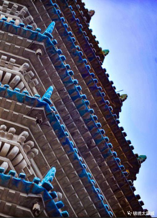 时至今日,永祚寺双塔依然巍峨屹立,一塔凝视历史,一塔展望未来,日夜守护着这片土地和生活在这里的人民。双塔巍巍,凌霄而立,它们是太原的骄傲也是中国古建筑的骄傲,长久的时光变化给这两座双塔留下了太多的痕迹。塔身八角的突触端挂有风铃风吹过来清脆作响,讲述着时光的故事......