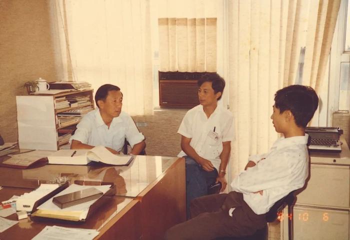 80年代中,麦伯良与李启元、黄守廉在办公室研究工作