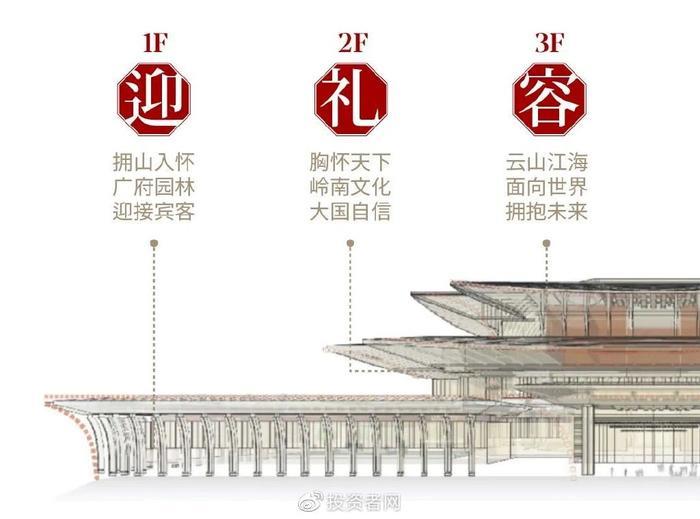 白云国际会议中心“国际会堂”由何镜堂院士团队设计,以“云山叠景”、“青山入城”引入景色,结合挑檐、遮阳、庭院等岭南建筑特色,巧妙组织布局,演绎岭南新中式风格建筑风貌。