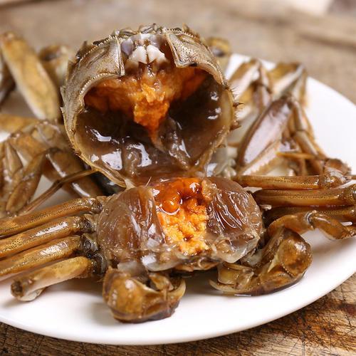 盘锦河蟹,辽宁省盘锦市特产,中国国家地理标志产品。盘锦河蟹,体型短粗而厚重,背壳色深,多黑色或铁青色。腹白(稻田蟹有划痕),腿短,螯足多毛,仿佛戴着黑色毛手套。从大眼幼体到扣蟹,经过数次脱壳,蜕变为成蟹。成蟹争勇好斗,丢螯卸足也毫不退缩。盘锦河蟹与大闸蟹共名中华鳌绒蟹,因南北差异问题,北称河蟹,南名闸蟹。正宗的盘锦河蟹无论从口味、个头,还是生长环境,以及螃蟹营养价值最高的蟹黄来说,在个头大小一样的情况下,盘锦河蟹蟹黄含量是最多的!螃蟹们在秋季换壳后,经过了一个秋天的“贴秋膘”,在冬天蟹季捕捞上来时可说是全年最肥之时。
