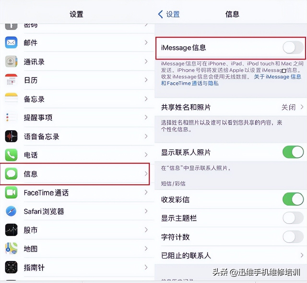 反手给个举报。如果你平时很少用iMessage信息就可以直接关闭这个功能,具体操作方法:打开手机的 设置,找到“信息”,将“iMessage信息”后的开关关闭即可。