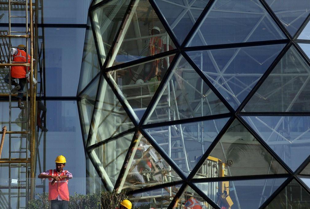 12月7日,建筑工人在装修Isha Ambani婚后的家。