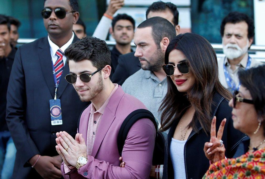 演员朴雅卡·乔普拉(Priyanka Chopra,女)与丈夫尼克·乔纳斯(Nick Jonas)参加Isha Ambani的婚礼。