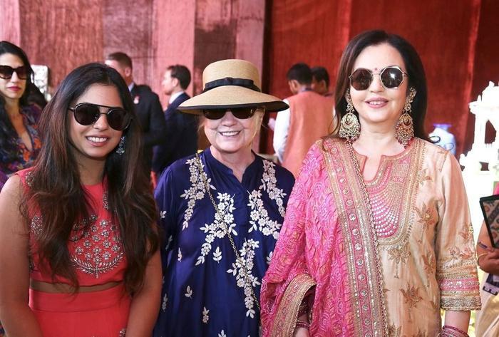 近日,亚洲首富Mukesh Ambani唯一的女儿Isha Ambani(左一)出嫁,婚宴的宾客名单包括希拉里·克林顿,表演嘉宾有顶级巨星碧昂丝。