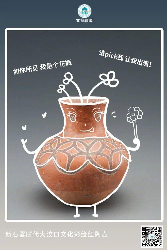 这件圆嘟嘟的“红胖子”,来头可不一般,它名为新石器时代大汶口文化彩绘红陶壶,出土于茌平尚庄遗址,现在可是国家一级文物哦。