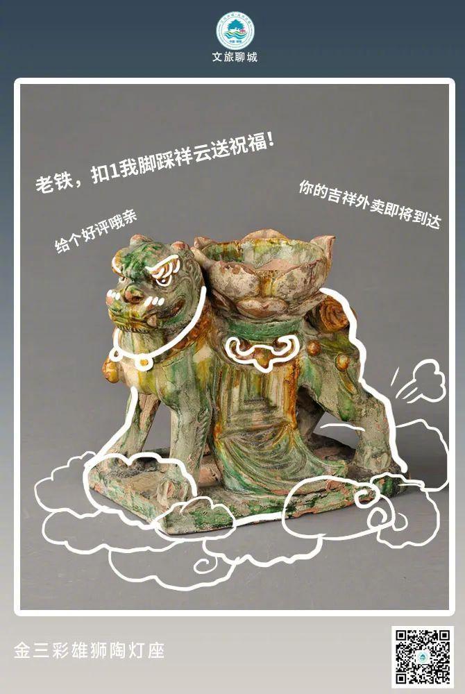 唐三彩是釉陶发展的高峰,金三彩继承了唐三彩的工艺。狮子与佛教息息相关,佛经中多有讲到狮子。狮子的梵语叫“僧伽彼”,佛、菩萨所坐之处叫狮子座。佛教中用狮子吼比喻佛菩萨说法时震慑一切外道邪说的神威。现在这件藏品被珍藏于聊城中国运河文化博物馆内。