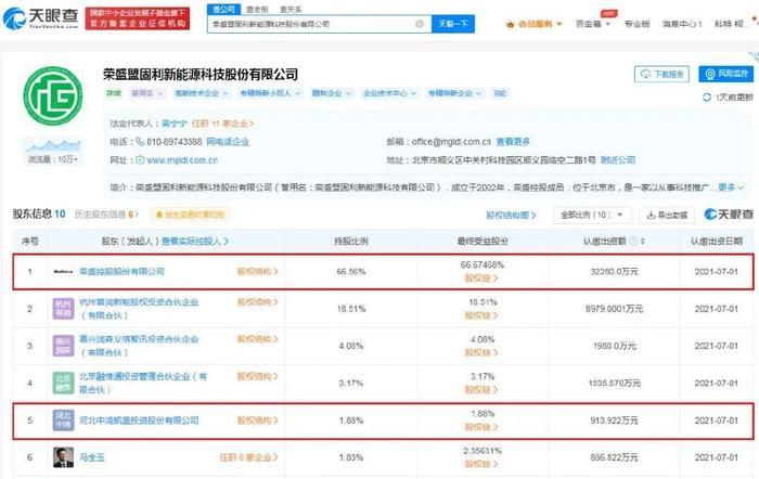 天眼查显示,荣盛控股及关联企业河北中鸿凯盛,分别持有盟固利66.56%、1.88%股权。