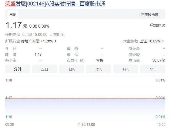 5月以来,荣盛股价阴跌不止,停牌前只有1.17元/股。若持续低于1元,将触发退市,耿建明已临近危机边缘。