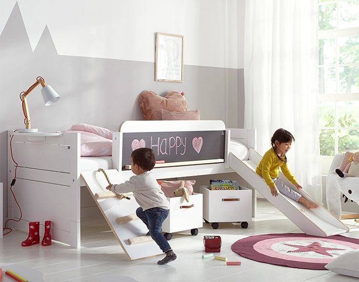 4-7岁的小孩开始有自己的喜好,特别多小孩喜欢带滑梯或者阶梯的床,并且这种床还可以有储物空间,可以选这种高低床。