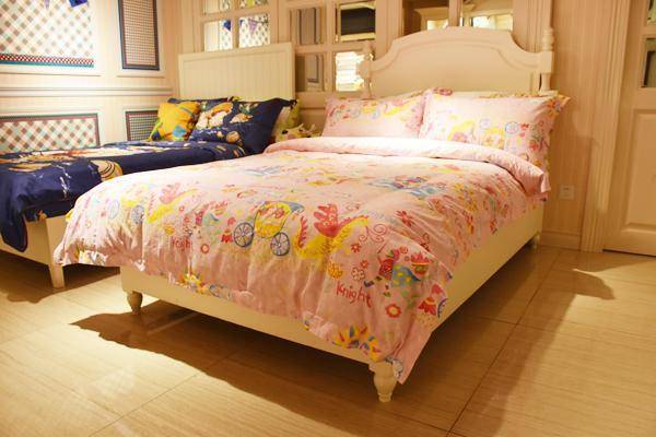 如果你家儿童房空间很宽敞,对床的大小尺寸没有什么要求的话,可以直接买成品床,成品床常见的实木床、板式床、铁艺床、皮床、布艺床都有。