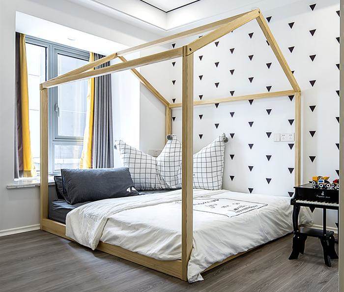 如果你想给小孩一张特别一点的床,可以考虑找木工现场打造一张床,这样造型可以多变,比较符合个性化。